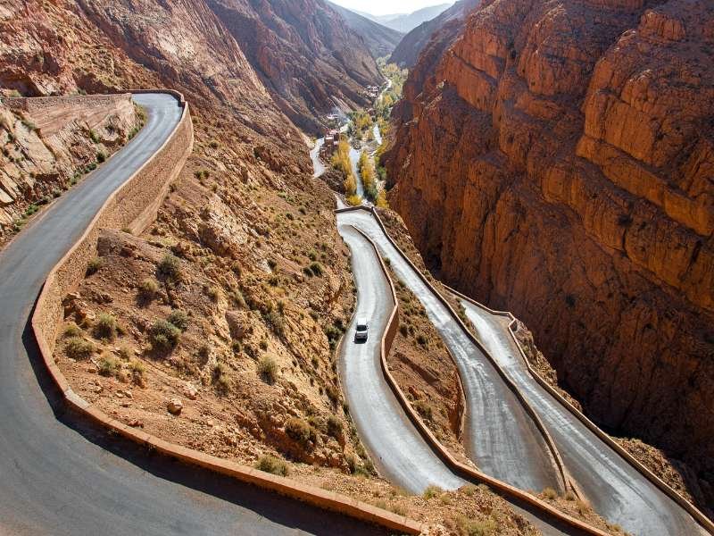 In the morning, our driver will meet you at the airport or your accommodation in Marrakech and then start your 5 days tour from Marrakech to Merzouga enjoy an unforgettable trip from Marrakech to Dades Gorges, crossing the High Atlas Mountains and cross the Tizi N’Tichka pass 2,260 meters and witness lovely villages nestled on the mountainsides, taking in the finest sceneries along the way.